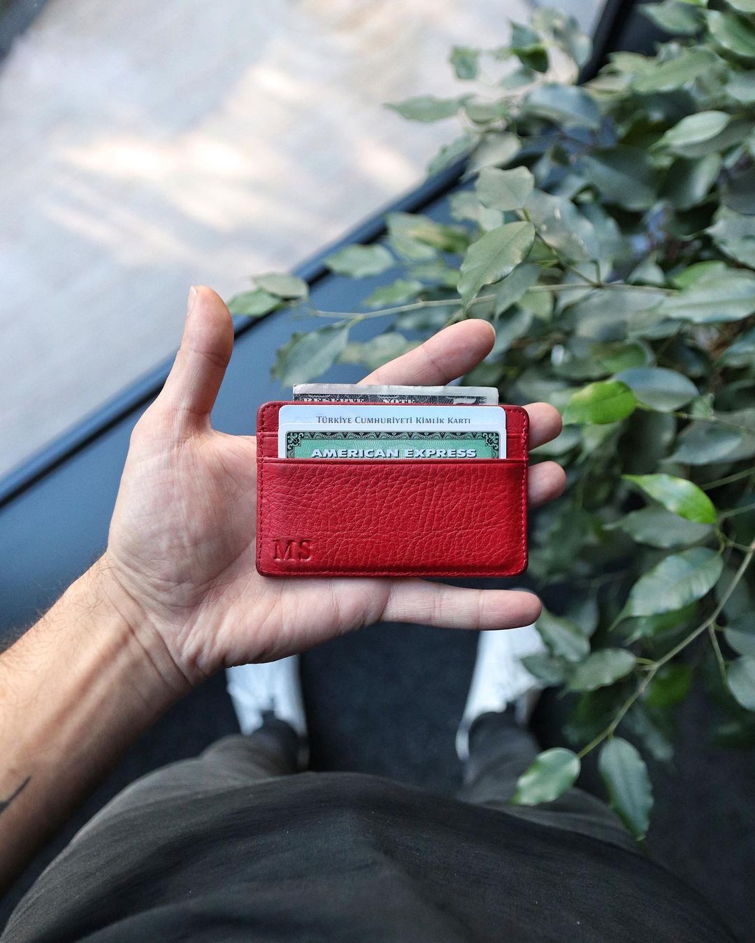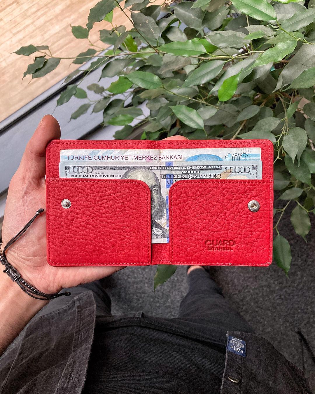 Kırmızı Gerçek Deri Fermuarlı Mini Cüzdan